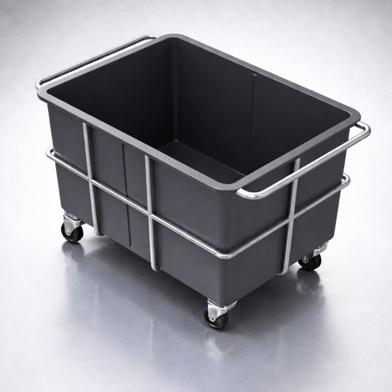 The Industrial Plastic Utility Cart is a robust material-handling solution designed for industrial, manufacturing, logistics, and laboratory environments. Featuring a high-strength molded plastic bin supported by a reinforced stainless steel tubular frame, this cart is optimized for durability, hygiene, and ease of movement in demanding workflows.